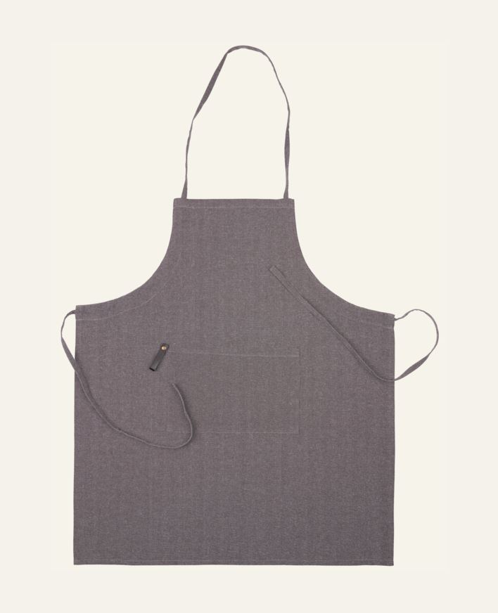 Tyylikäs esiliina joka suojaa vaatteitasi ruuanlaiton ajan ja saa sinut tuntemaan mestarikokiksi. Puetaan pään yli ja solmitaan selän taakse. Edessä katevä tasku.