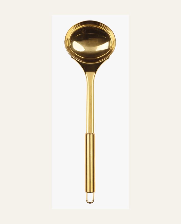 Kullanvärinen kauha ruostumatonta terästä. Sopii ottimeksi keitolle tai kastikkeelle. Kauhassa on käytännöllinen ripustussilmukka, josta se on helposti ripustettavissa näkyville keittiöön kauniiksi sisustusyksityiskohdaksi. Ei voida pestä astianpesuk...