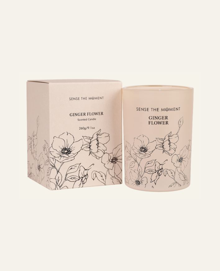 Sense Stillness tuoksukynttilä, jossa tuoksuna inkiväärikukka. Valmistettu parafiinista ja sertifioidusta vahasta. Kaunis ja tyylikäs pakkaus. Lue varoitustekstit ennen käyttöä.