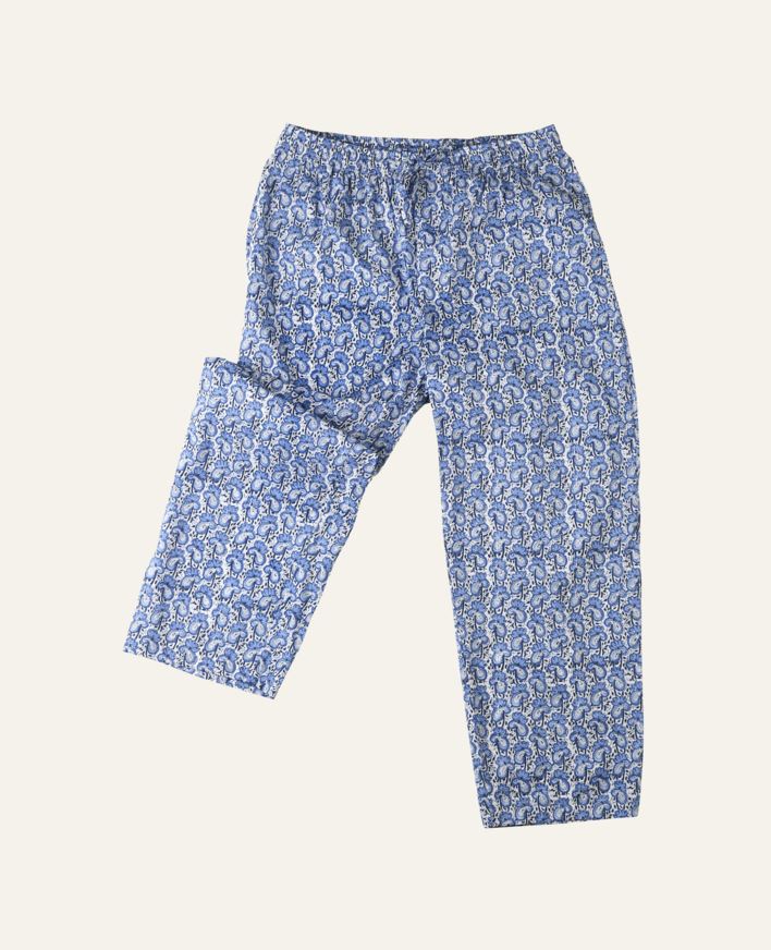 Pehmeät ja ihanat pyjamahousut, joissa on kuminauha vyötäröllä ja lahkeiden alaosassa. Yhdistä samaan kuosin kimonon kanssa.