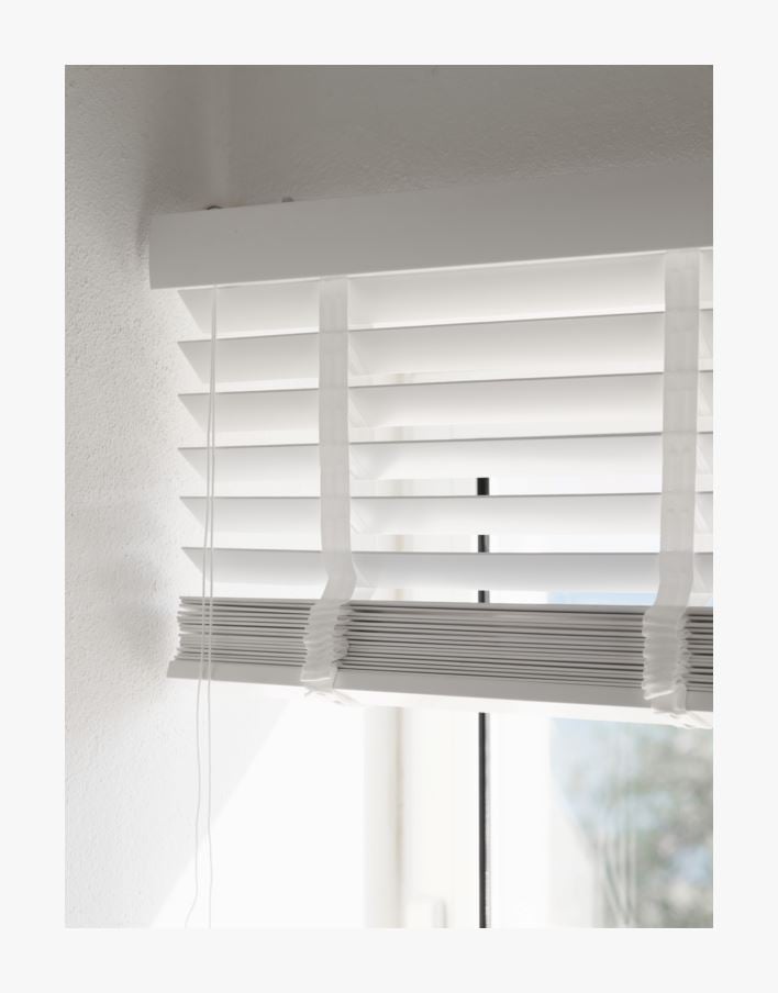 Vapaasti riippuva klassinen puusälekaihdin, jossa on värisävyyn sopivat nauhat tai perinteinen naruveto. Saatavana jopa 300 cm leveänä ja 270 cm korkeana. Täältä voit lukea lisää siitä, miten mittaat ja asennat puusälekaihtimen.