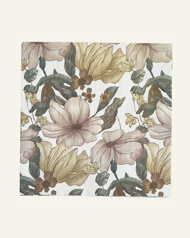 Kukalliset paperiservetit. Servetit ovat FSC-merkittyjä ja pakkauksessa on 20 kappaletta 3-kerroksisia servettejä.