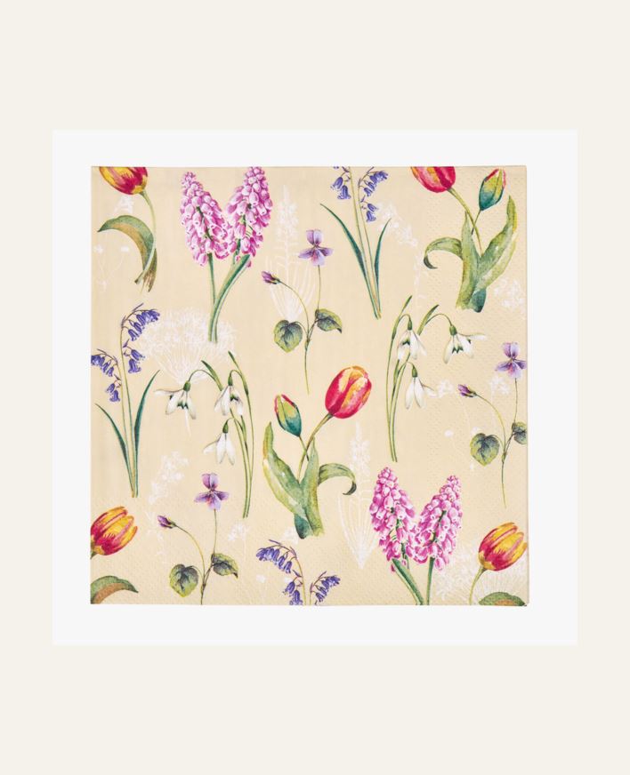 Kukkakuvioiset paperiservetit. Servetit ovat FSC- ja Joutsenmerkittyjä, ja pakkauksessa on 20 kappaletta 3-kerroksisia servettejä. Osta tämä tuote ympäristöystävälliseksi ja tyylikkääksi tavaksi kattaa pöytä.