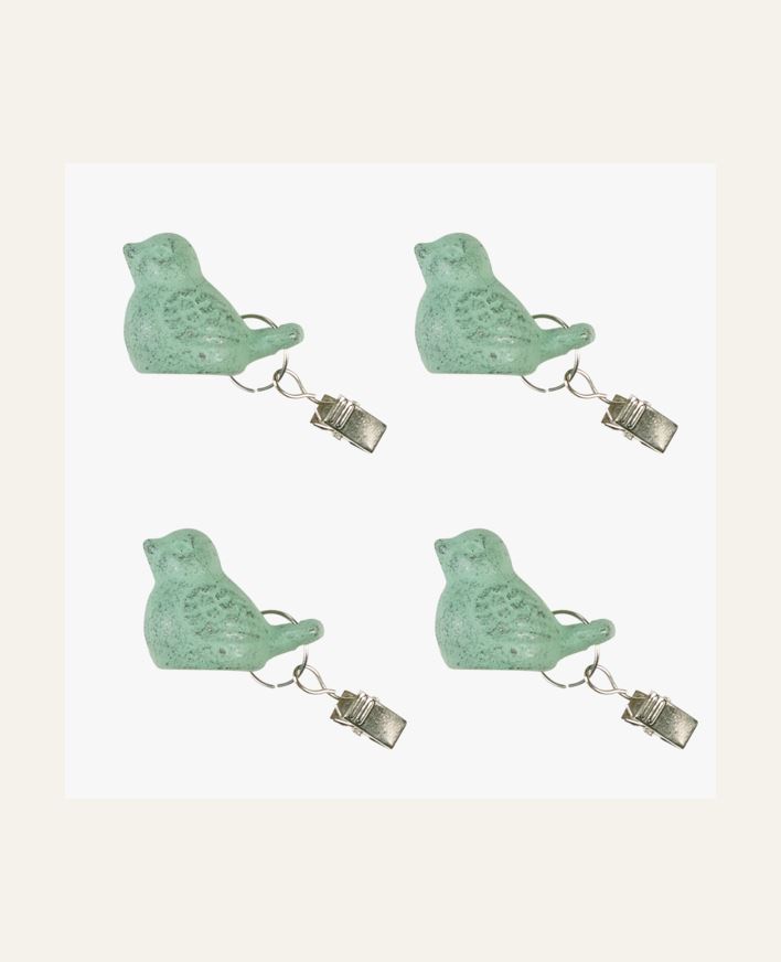 Metalliset linnun muotoiset pöytäliinapainot. Painot pitävät pöytäliinan paikoillaan tuulisina päivinä. 4-pack.