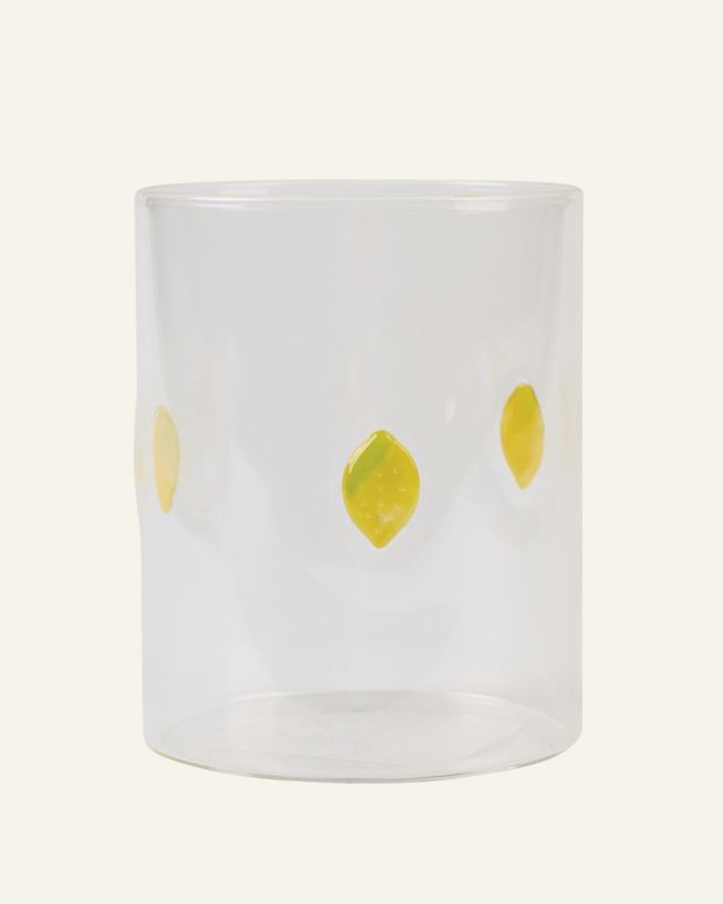 Viehättävä lasi, jossa on sitruunakuvio.