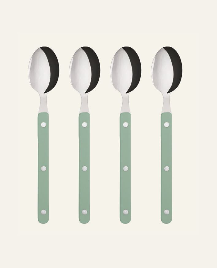 4 teelusikkaa ruostumatonta terästä muovikahvalla.