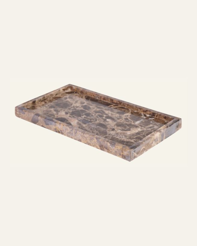 Reunallinen marmoritarjotin, joka sopii keittiöön, kylpyhuoneeseen tai sohvapöydälle. Kerää tarjottimelle maljakoita ja koristeita tyylikästä asetelmaa varten tai aseta tarjotin keittiöön mausteiden kanssa. Voit myös lisätä lämpökynttilöitä kynttiläl...