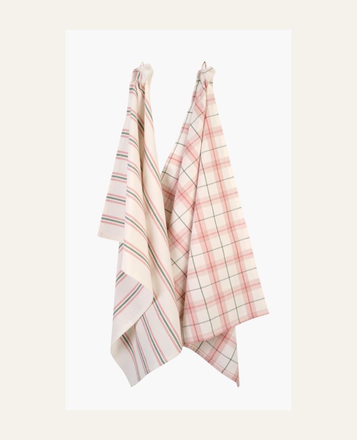Suloiset keittiöpyyhkeet sinivalkoisilla raidoilla, 100% puuvillaa.
