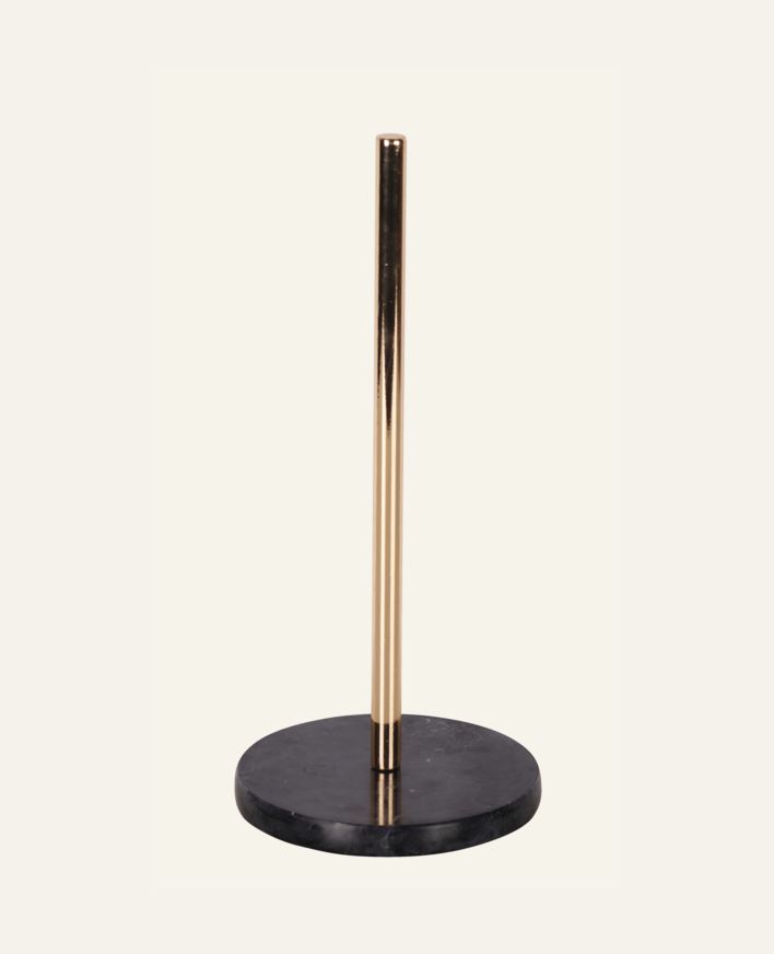 Tyylikäs talouspaperiteline marmorista ja metallista.
