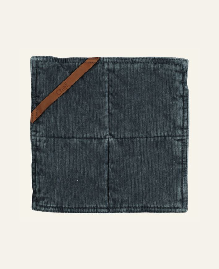 Klassinen patalappu, jossa koristeellinen nahkaripustin ripustamista varten.