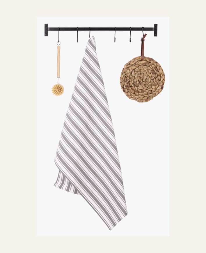 Käytännöllinen seinänaulakko keittiövälineille. S-koukut ripustamista varten sisältyvät pakkaukseen.
