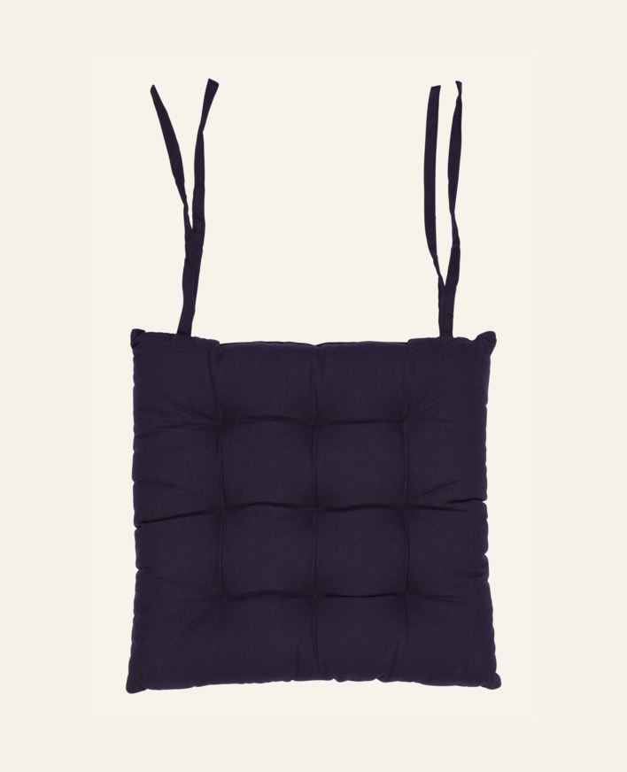 Yksivärinen istuintyyny, jossa nauhat kiinnitystä varten. Istuintyynyn päällinen on 100 % puuvillaa. Saatavana useassa eri värissä.