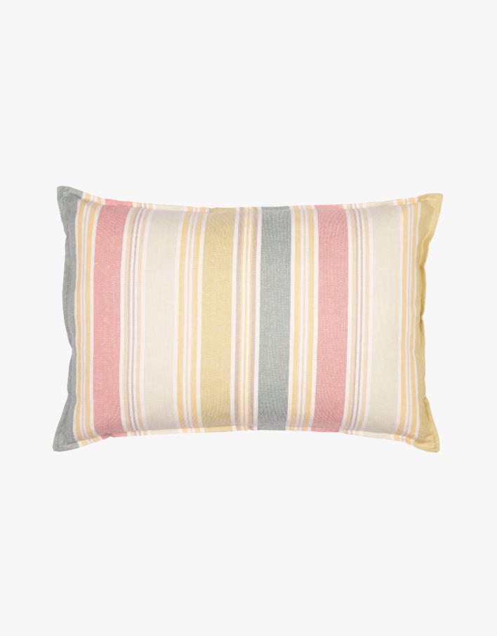 Raidallinen koristetyynynpäällinen pastelliväreissä, puuvillaa.