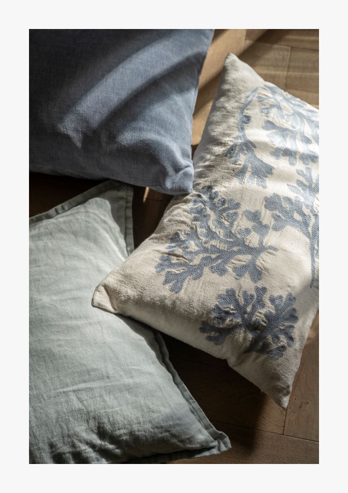 Yksivärinen pellavatyynynpäällinen.
