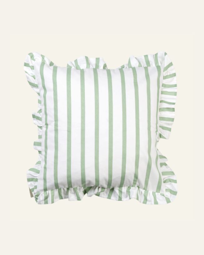 Raidallinen koristetyynynpäällinen, jossa on röyhelöreuna. Parhaan mahdollisen mukavuuden saavuttamiseksi täytä se yhdellä pehmeistä höyhentyynyistämme. Anna kodillesi ja sisustuksellesi tyylipäivitys tällä koristeellisella tyynyllä. Käytä sitä yksin...