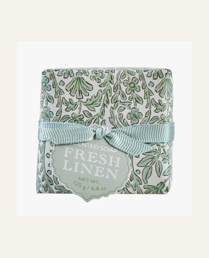 160 g käsisaippua kauniissa pakkauksessa, jonka tuoksuna on Fresh Linen. Koristeellinen kylpyhuoneessasi, mutta myös mukava antaa lahjaksi.