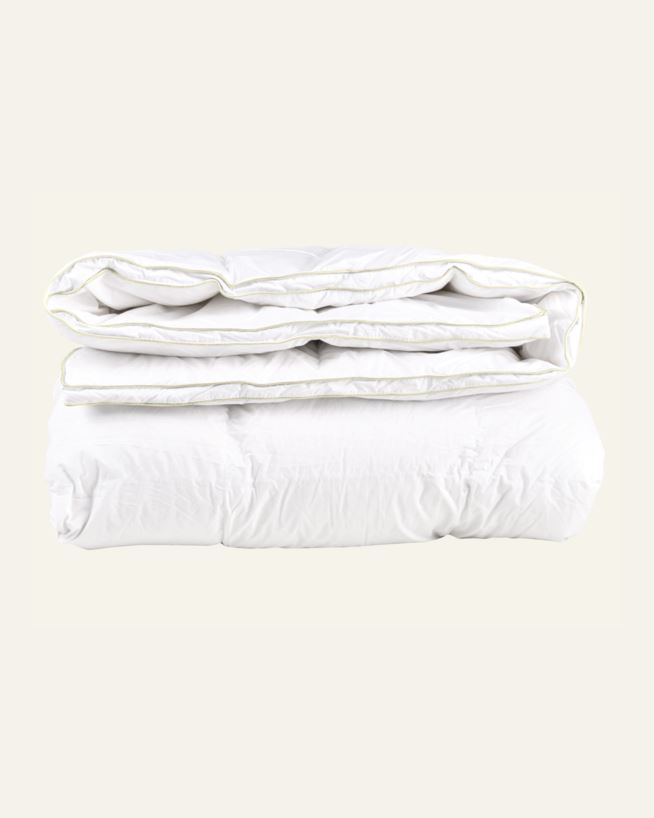 Lämmin ja ilmava peitto, jonka päällinen on ylellistä cambric-puuvillaa. Valitse tämä peitto, jos sinulla usein kylmä nukkuessasi. Täyte: 90 % valkoista ankka untuvaa, 10 % valkoista ankan höyhentä. GSM tarkoittaa "grammaa neliömetriä kohti" ja kerto...