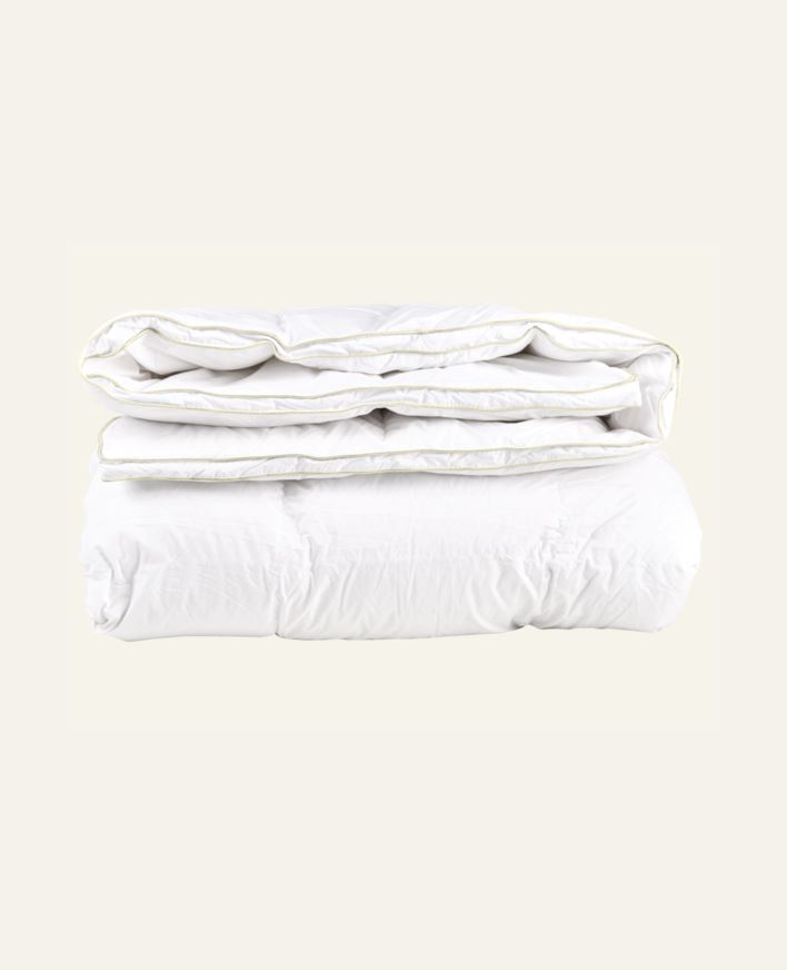 Lämmin ja ilmava peitto, jonka päällinen on ylellistä cambric-puuvillaa. Valitse tämä peitto, jos sinulla usein kylmä nukkuessasi. Täyte: 90 % valkoista ankka untuvaa, 10 % valkoista ankan höyhentä. GSM tarkoittaa "grammaa neliömetriä kohti" ja kerto...