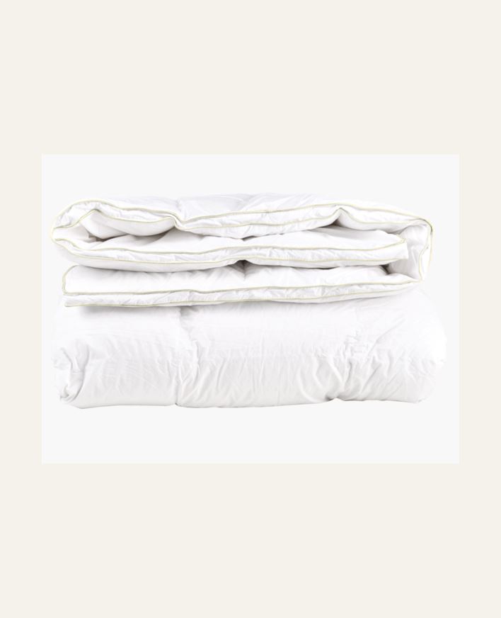 Lämmin ja ilmava peitto, jonka päällinen on ylellistä cambric-puuvillaa. Valitse tämä peitto, jos sinulla usein kylmä nukkuessasi. Täyte: 90 % valkoista ankka untuvaa, 10 % valkoista ankan höyhentä. GSM tarkoittaa "grammaa neliömetriä kohti" ja kerto...