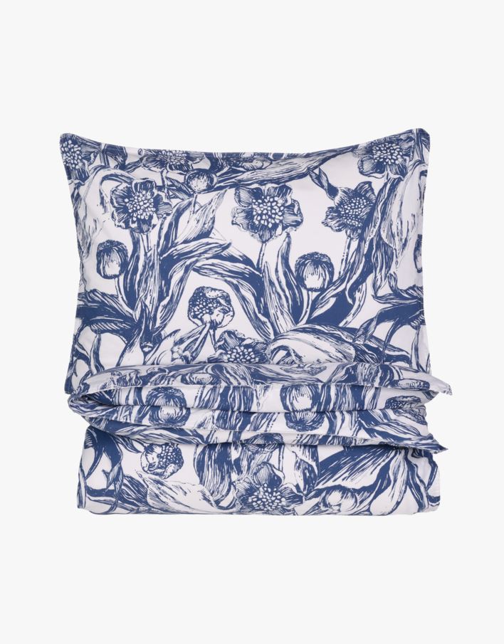 Pussilakanasetti percalepuuvillaa, jossa kaunis kukkakuviointi. Percale on kestävä laatu, hienokampaisesta puuvillasta, jonka pinta tuntuu mukavan viileältä ihoa vasten. Percale pussilakanasettimme ovat valmistettu 100 % BCI-sertifioidusta puuvillasta ja kudottu pitkästä puuvillakuidusta, joka tekee kankaasta erityisen kestävän. Konepesu 60 asteessa. Pussilakanasetti koossa 150x210 cm sisältää yhden pussilakanan ja tyynyliinan (50x60 cm). Kingsize-koko (230x220 cm) sisältää parivuoteen pussilakanan ja kaksi tyynyliinaa (50x60 cm).