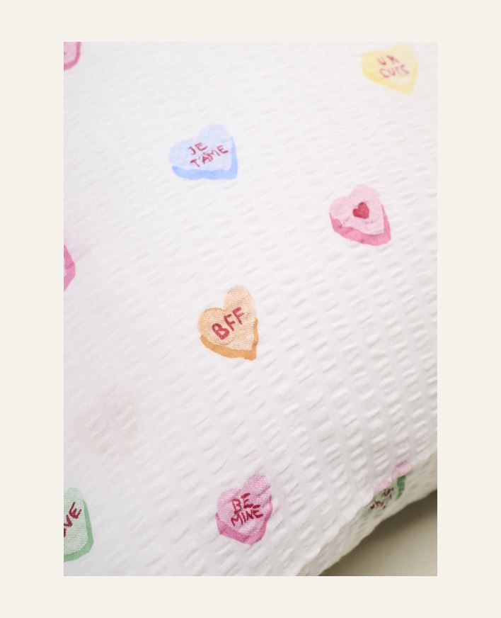 Kreppipuuvillainen Heart-tyynyliina on valmistettu 100 % puuvillasta, jolle on ominaista aaltoileva pinta. Kreppi-vuodevaatteet tuntuvat viileiltä ja mukavilta ihoa vasten ja sopivat täydellisesti lämpimiin kesäöihin.