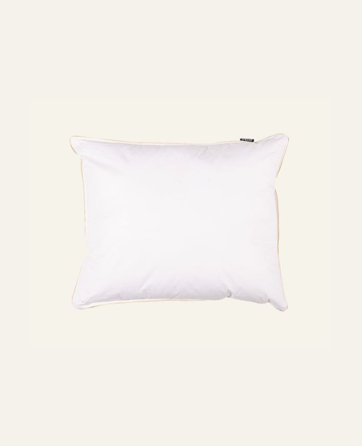Matala kuitutyyny Johan, jonka päällinen on puuvillaa. Matala tyyny sopii sinulle, jos yleensä vatsallasi. Tällöin on tärkeää että pää ei nouse liian korkealle selkärankaan nähden. Täyttöpaino: 550 grammaa.