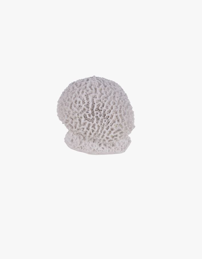 Valkoinen korallinmuotoinen koriste, polyresiiniä. Yksivärinen koralli, jossa kaunis pyöreä muoto ja valkoinen mattapinta. Korallista tulee kaunis koriste pöydälle tai ikkunalaudalle. Hieno sisustusyksityiskohta, joka voidaan asettaa kirjapinon päälle vastakohdaksi neliön muodolle.