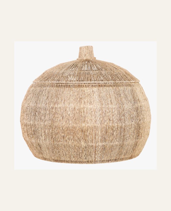 Pyöreä kannellinen säilytyskori, juuttia. Koria voidaan käyttää pienesineiden säilytykseen olohuoneessa tai leluille lastenhuoneessa. Säilytyskori on yhtä koristeellinen kuin käytännöllinen, joka tekee siitä sopivan moneen eri huoneeseen. Halkaisija:...