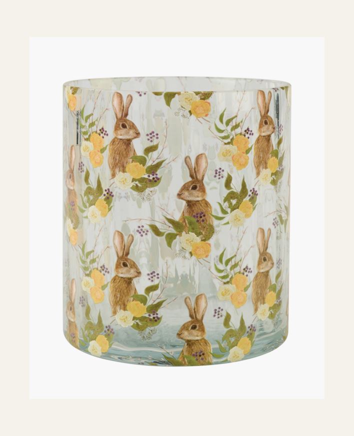 Kaunis kynttilälyhty, jota koristavat kanit. Sopii täydellisesti antamaan kodillesi ihanaa pääsiäistunnelmaa.