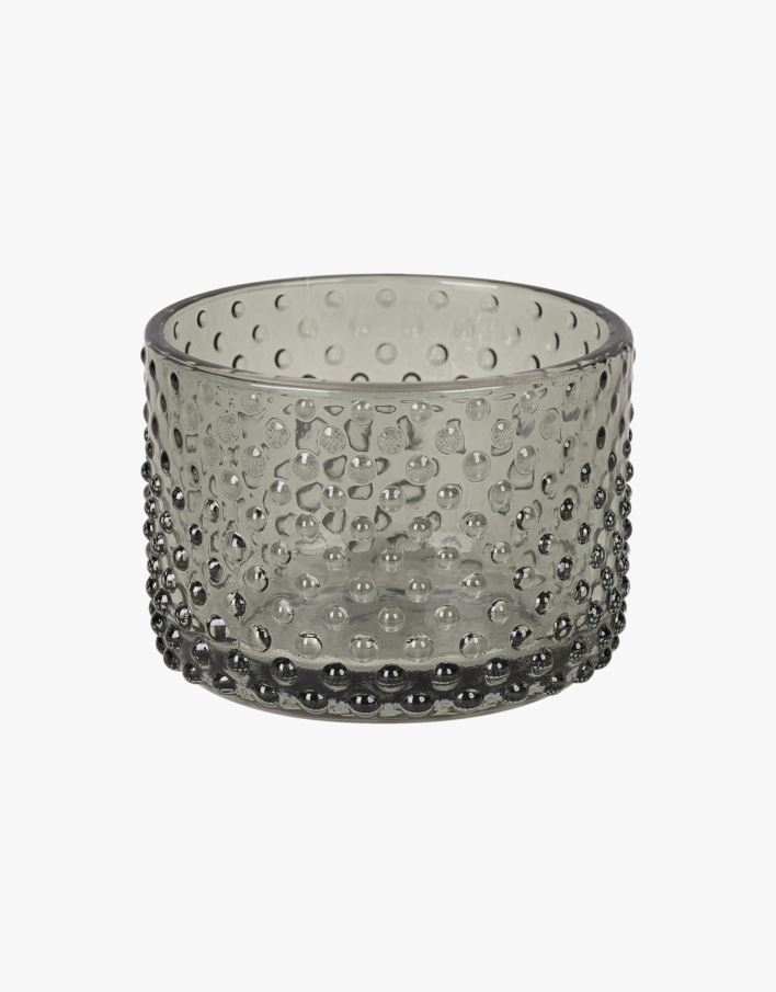Kaunis pieni lasinen kynttilälyhty, jossa on pistekuviointi. Yhdistele eri kokoisia ja värisiä kynttilälyhtyjä, joilla saat luotua tyylikkäitä asetelmia.