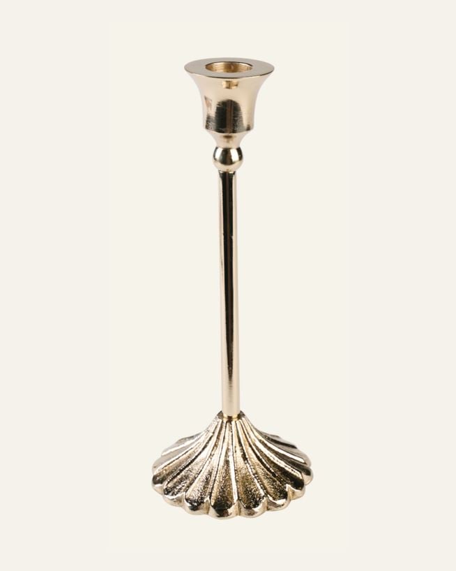 Upea kynttilänjalka kullanvärisestä alumiinista.
