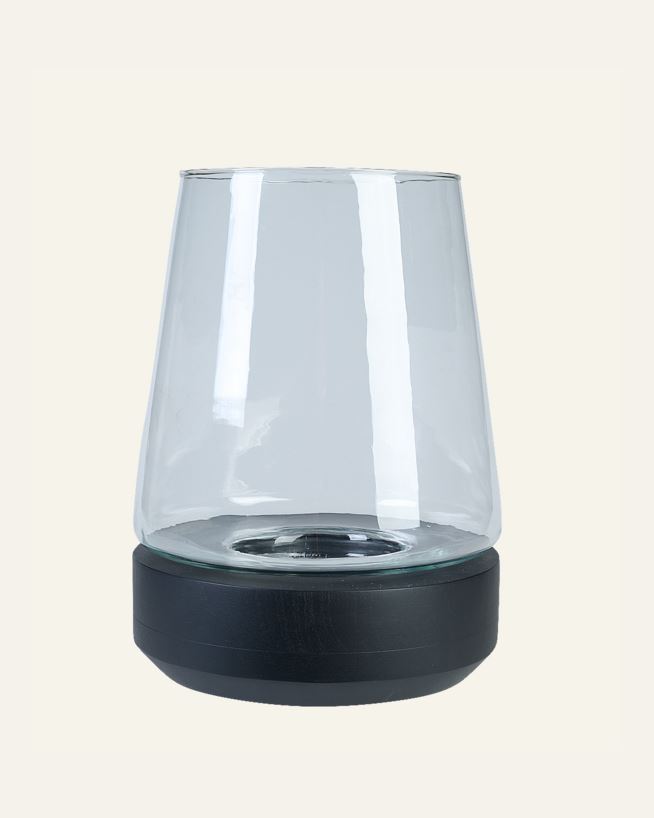 Tyylikäs kynttilälyhty, jonka alaoasa on mangopuuta. Saatavana kahdessa eri värissä.