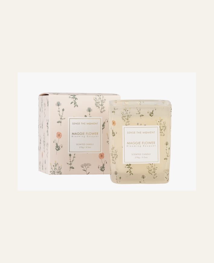 Tuoksukynttilä, jonka tuoksuna on Blooming bouquet. Valmistettu parafiinista ja sertifioiduista vahasta. Sytytä kynttilä ja anna tuoksun ja kauniin valon levitä huoneeseen. Kynttilän sisältö 270 g, paloaika noin 48 tuntia. Kynttilä on pakattu kauniis...