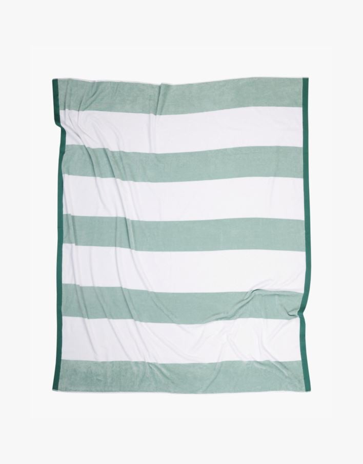 Erittäin suuri pyyhe lankavärjätystä puuvillaveluurista, jossa on tilaa koko perheelle.