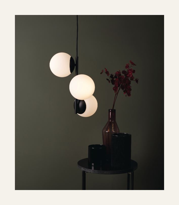 Funkle-sarjan tyylikäs kattovalaisin, jossa kolme pyöreää lampunvarjostinta, suupuhallettua lasia. Valaisimen runko on metallia ja johdon pituus on 2 metriä. Täydennä polttimoilla, 3 x E14 LED 5W.