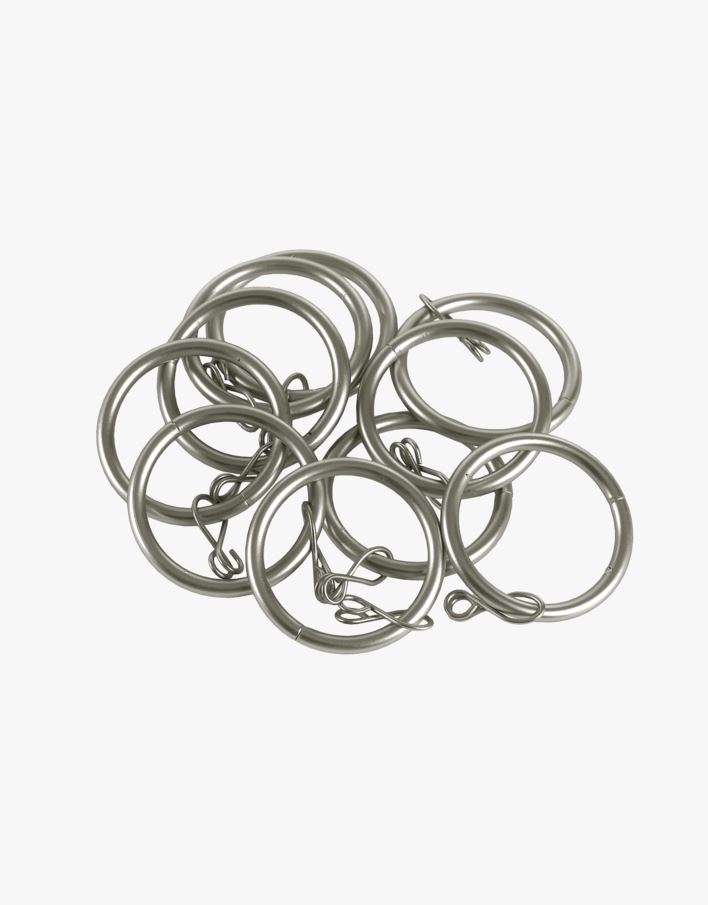 Kaikenlaisten verhojen ripustukseen tarkoitetut renkaat. Sopii sekä paksuille että ohuille verhotangoille. Myydään 10 kpl pakkauksessa.